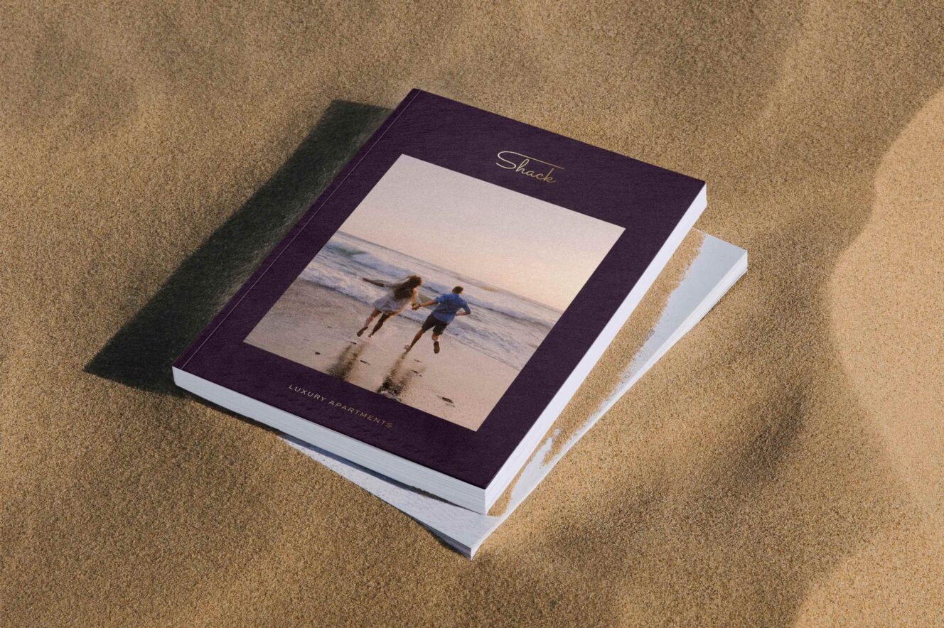 Inspired by this old-world-meets-new redevelopment, we set out to design Shack’s brand identity, stationery, print collateral and signage. Our brand concept weaves both the past and present of Palm Beach into its DNA. We opted for design elements that reflect Shack’s laidback luxury—choosing fine lines, organic curves and warm colour accents. We kept the mid-century essence core to the brand identity, creating a custom script typeface much like the hand-lettering found in 1950s brochures. In addition to the retro feel of Shack, we wanted to reflect its premium offering. We chose a refined blackberry and gold colour palette—a nod to the luxury fittings, interiors and inclusions. The final result, an authentic brand that melds the charm of yesteryear with the understated and unparalleled cool of Palm Beach.